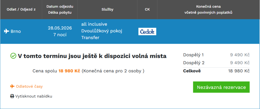 - stravování formou All Inclusive