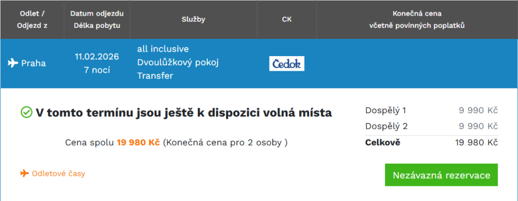 - KDY: Nejvýhodněji vychází termín: 11. – 18.2.2026